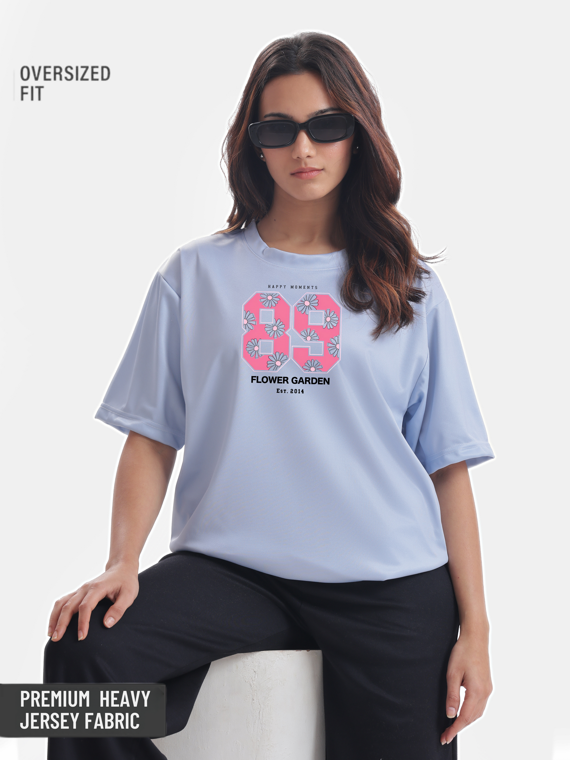 Embrace a stylish yet relaxed vibe with our pastel grey-blue t-shirt, perfect for sports or athletic gym adventures or laid-back outings with your bf (boyfriend) or friends and family, featuring the sporty number 89 adorned with vibrant Spanish spring flowers, allowing you to create your own story while enjoying happy moments in the flower garden since 2014.