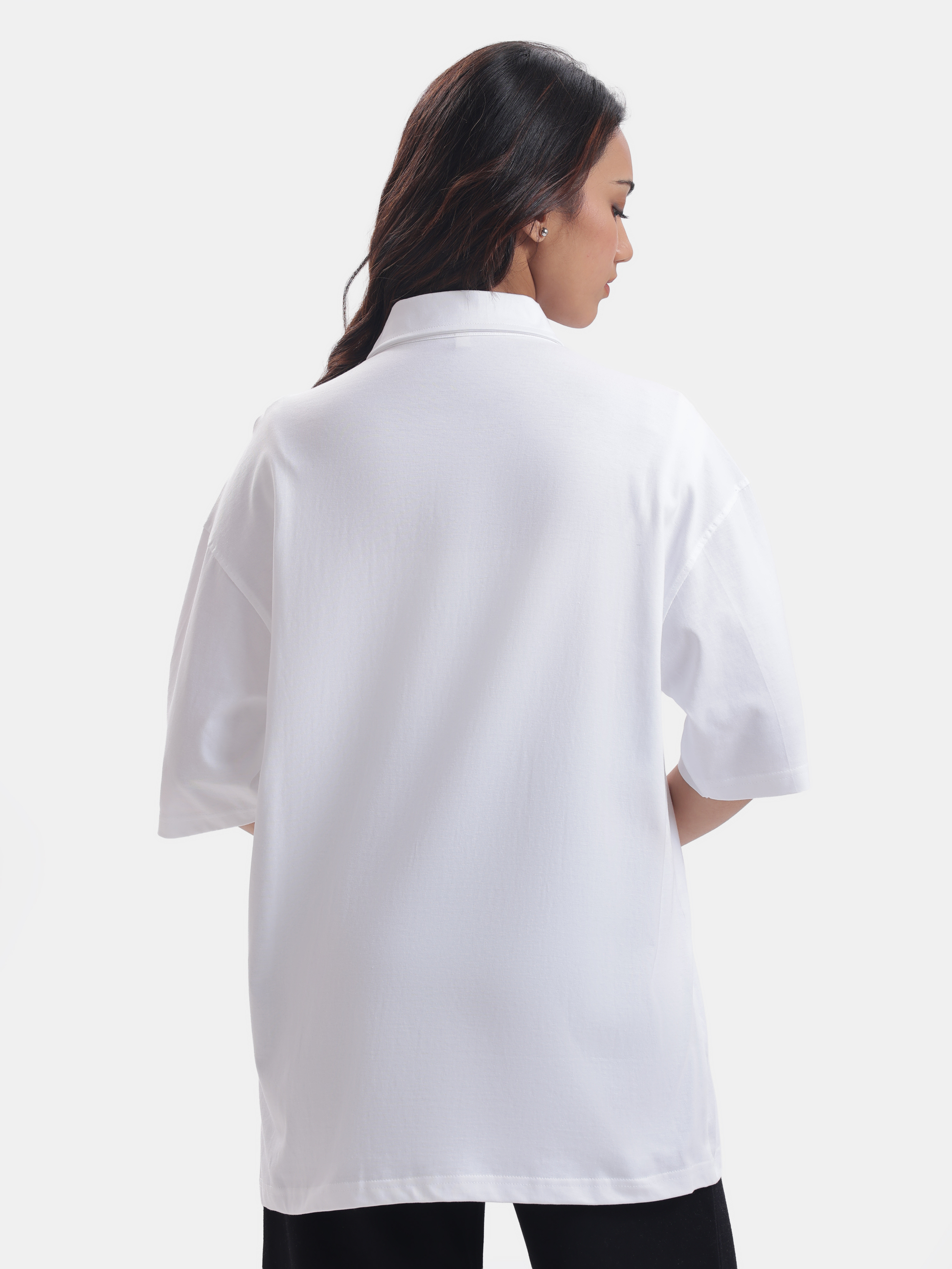 Embrace effortless style with this relaxed oversized white shirt for women, featuring a charming rose flower embroidery that effortlessly elevates your casual outings, whether you're meeting up with office mates, enjoying a laid-back date with your bf (boyfriend), or embarking on a holiday vacation car ride with friends and family, it pairs perfectly with your favorite jeans or favourite shorts for a chic yet comfortable look.