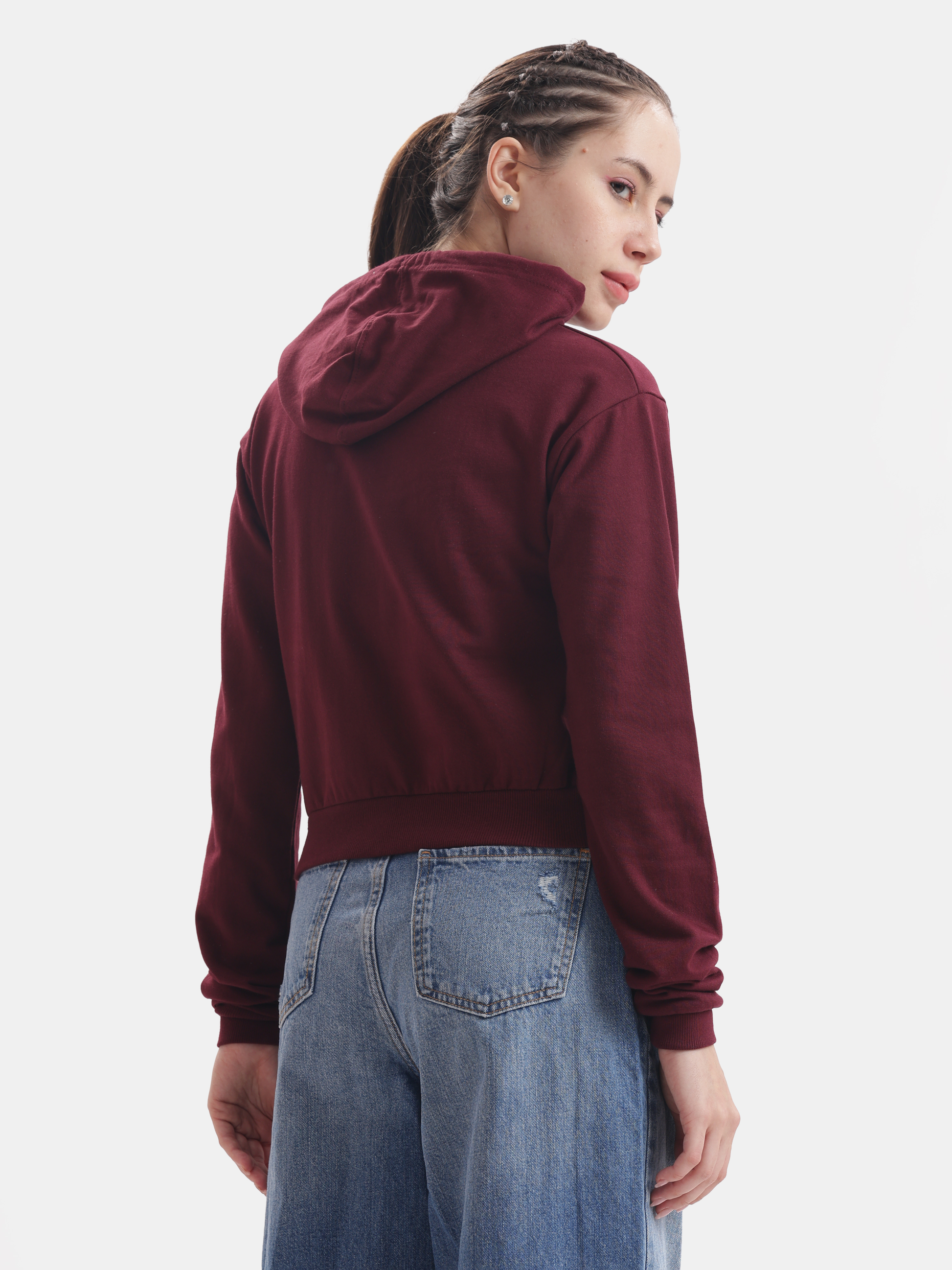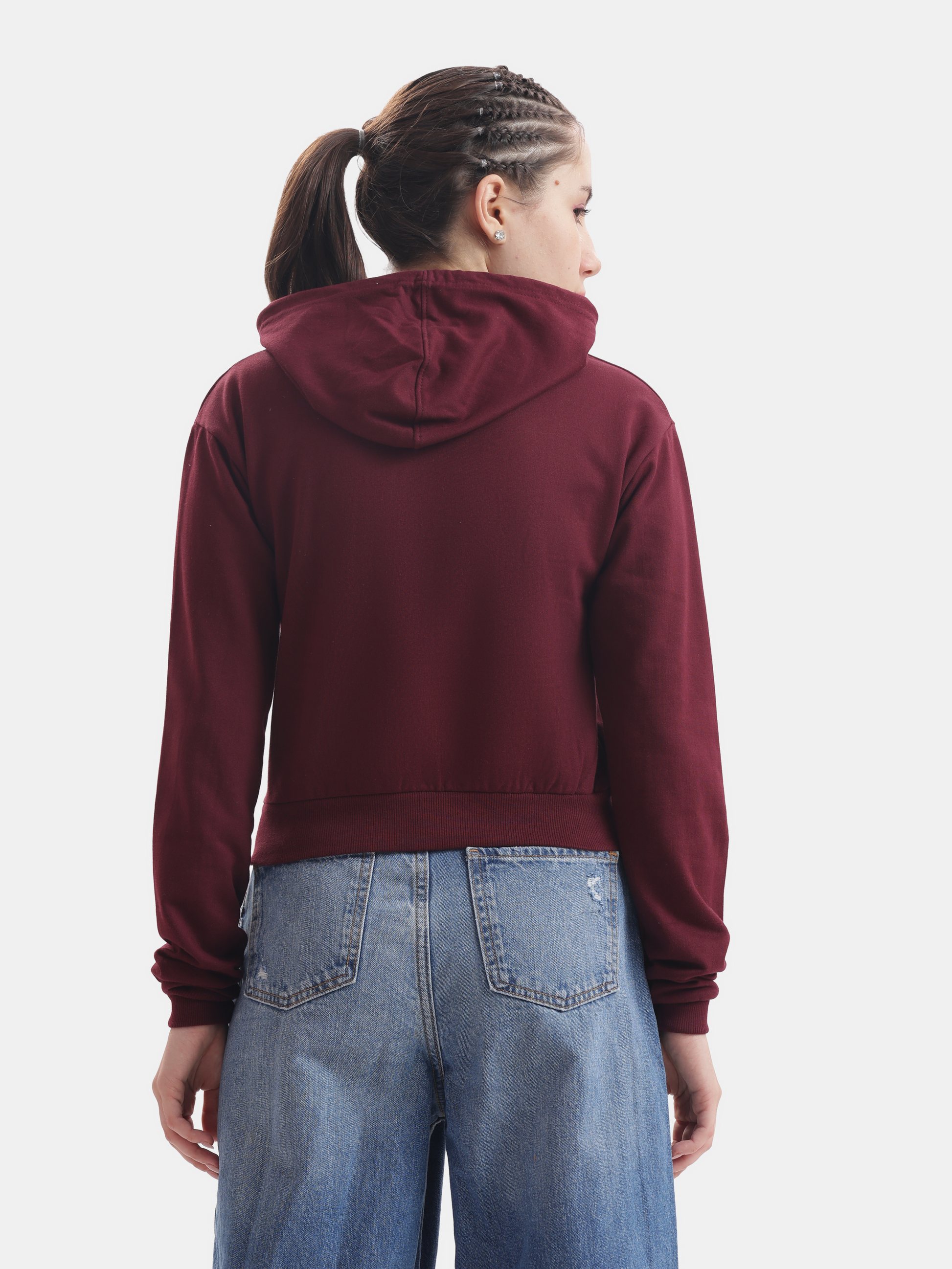 This stylish pet friendly maroon crop hoodie, made from thick and soft cotton, captures the delightful camaraderie of dogs and cats as they become best friends, talking, laughing, and sharing gossips, making it the perfect casual wear to enjoy cozy moments with your furry companions.