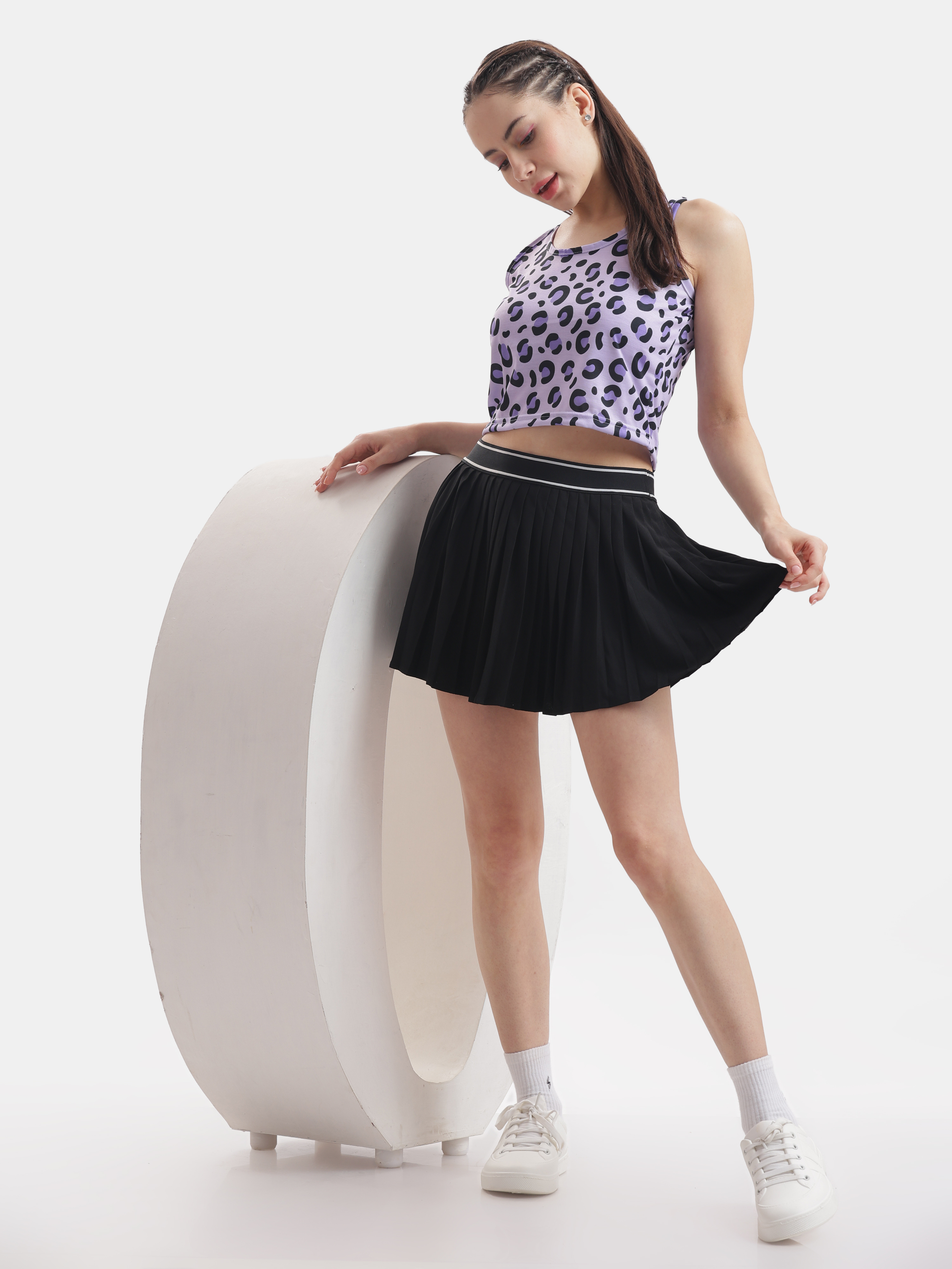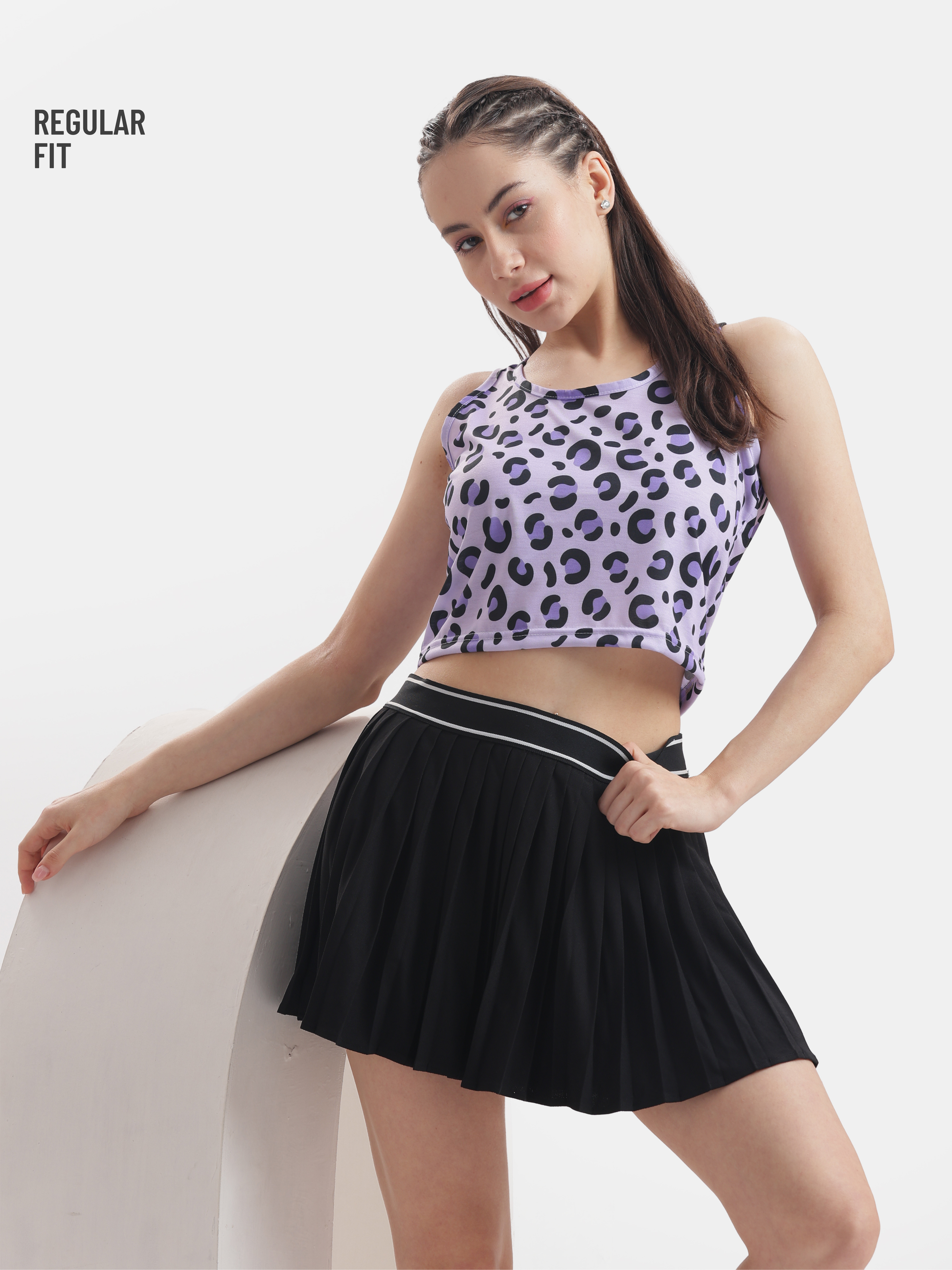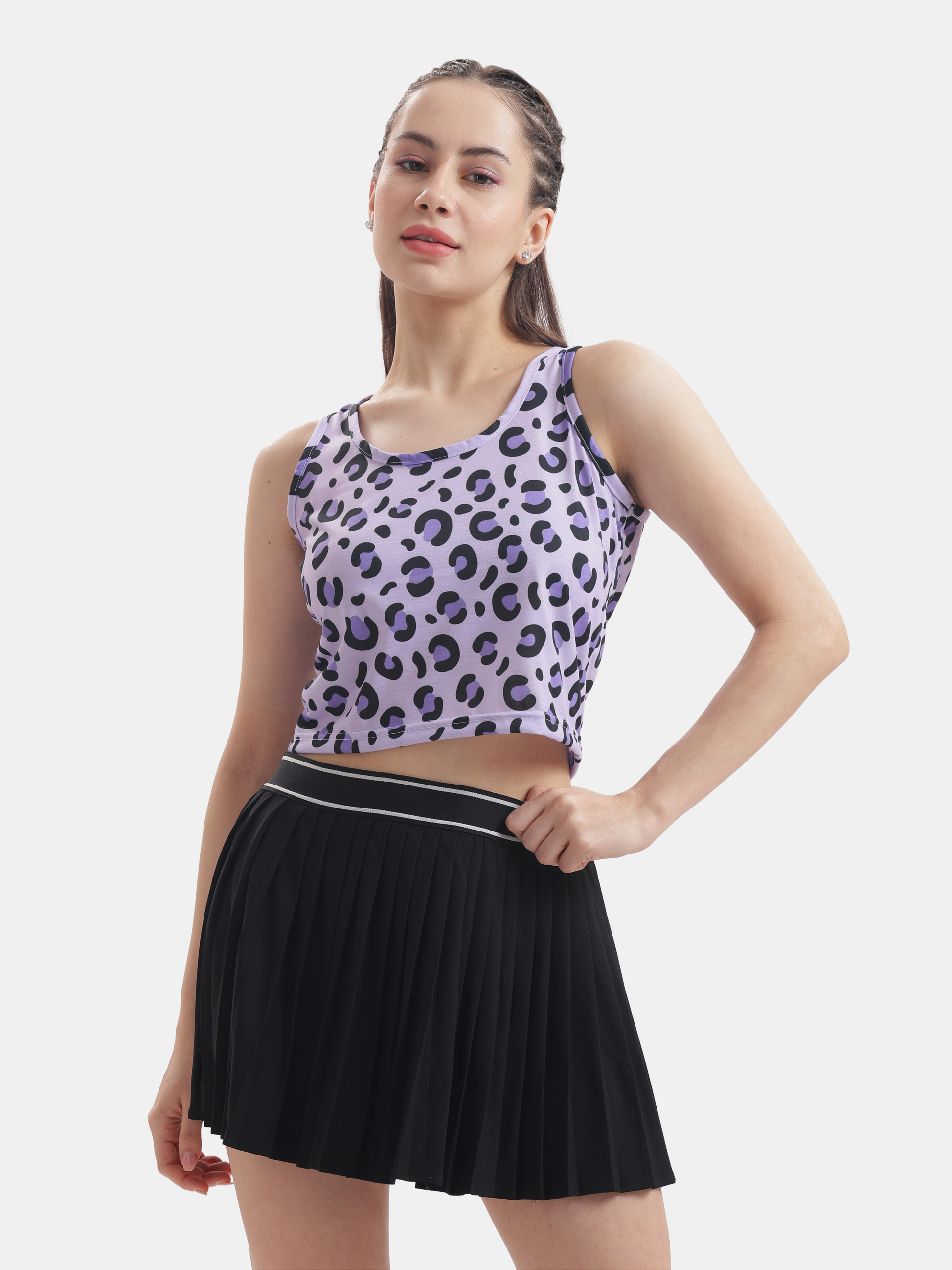 Elevate your casual wardrobe with this stylish violet and black crop tank top, designed for the bold and fierce, featuring a hot cheetah skin pattern that effortlessly combines comfort and flair, making it the perfect piece to pair with your favorite high-waisted jeans or a flirty skirt for a laid-back yet trendy look.