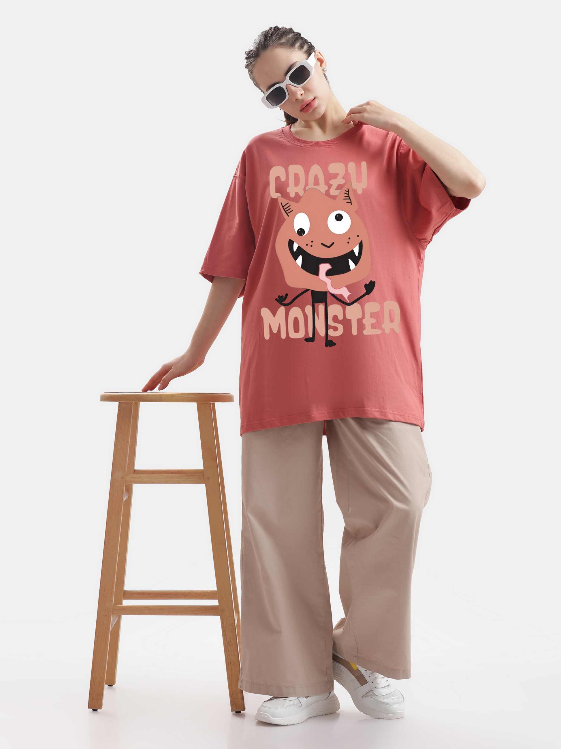 This coral-colored t-shirt features a playful design of a quirky monster that brings a touch of fun to your casual wardrobe, making it the perfect choice to pair with your favorite jeans or favourite shorts for a laid-back yet stylish day out with your bf or friends and family.