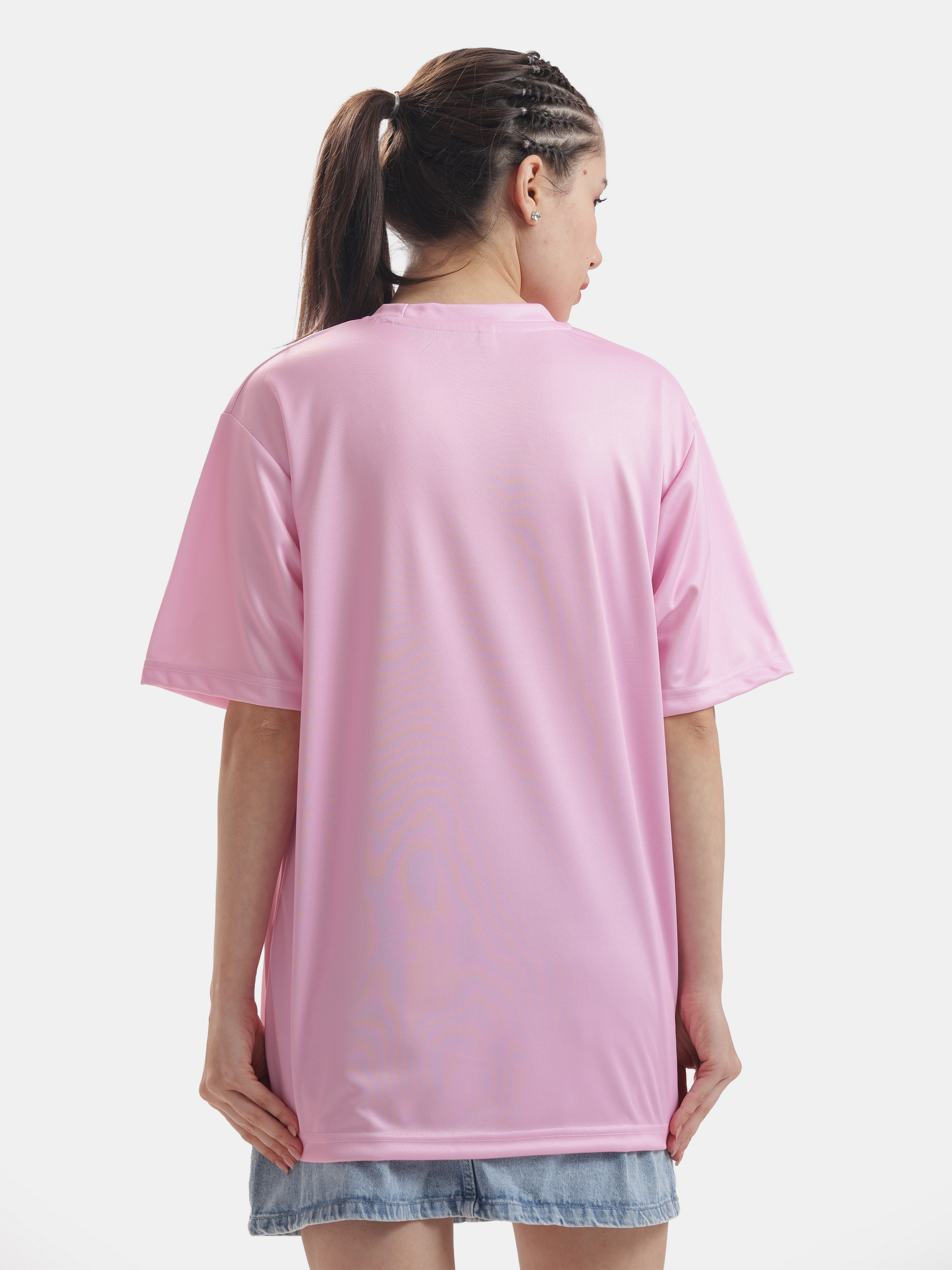 Embrace a stylish yet casual vibe with this relaxed oversized light magenta t-shirt for women, crafted from performance fabric that's perfect for sports or gym workouts or laid-back outings with your bf (boyfriend) or friends and family, featuring playful Chinese sugar cherries wrapped in leopard skin and a charming quote that celebrates beauty and femininity.
