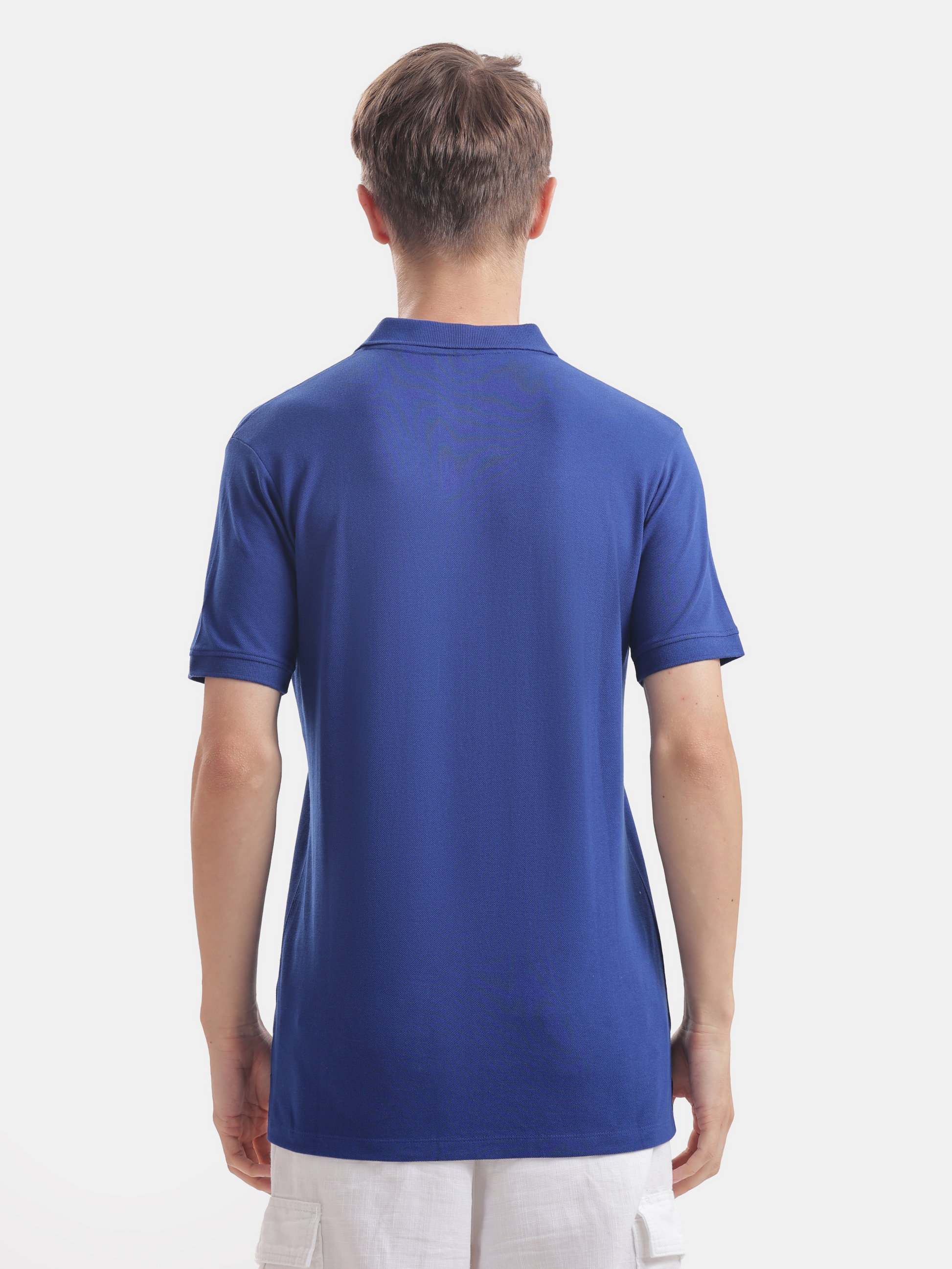 This royal blue polo t-shirt for man, crafted from stretchable textured cotton fabric, effortlessly transitions from formal meetings with colleagues to casual outings with friends, making it a stylish choice that's perfect for impressing your gf (girlfriend) on a date or enjoying a relaxed day with family.