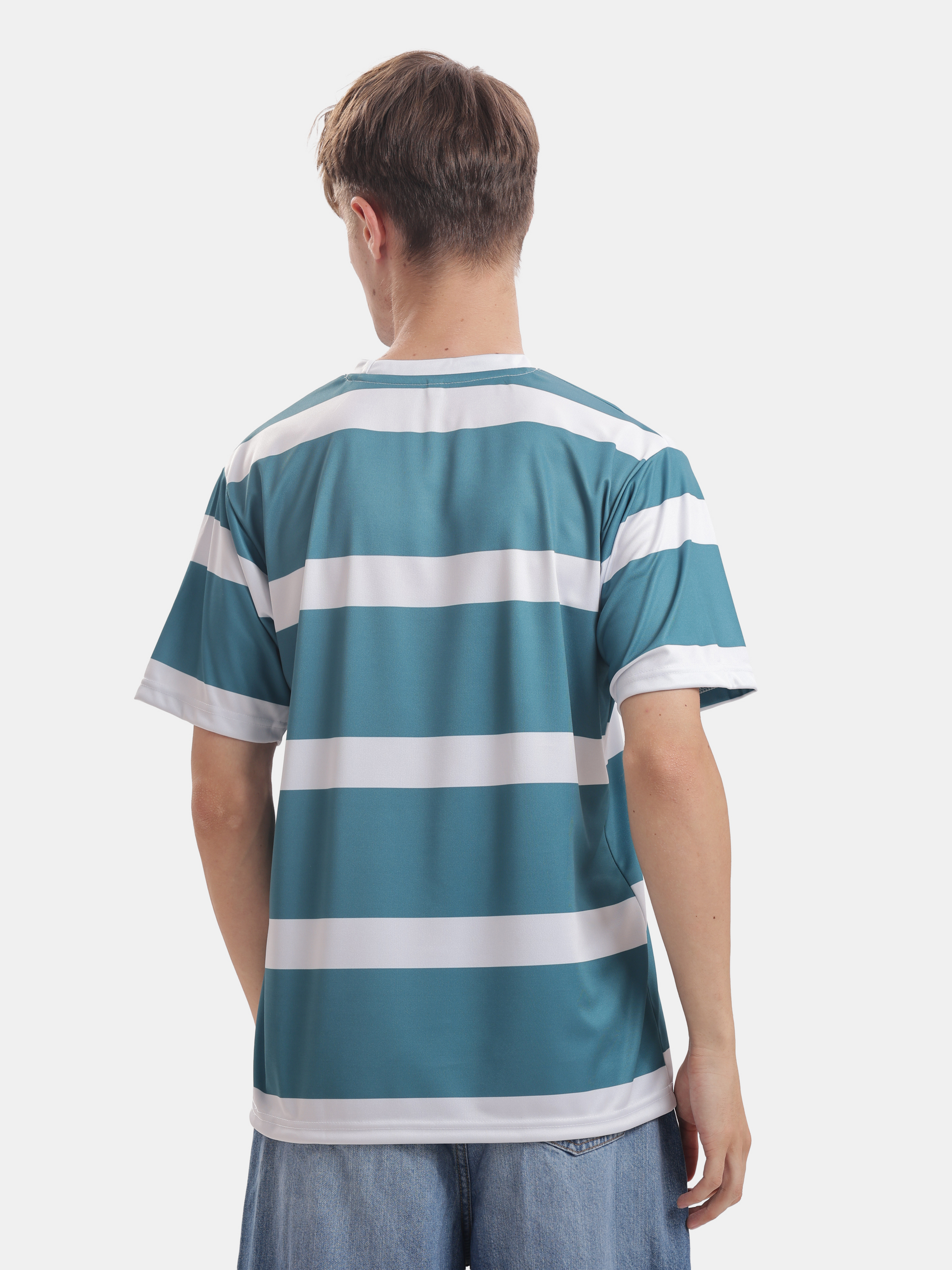 Embrace laid-back style with this relaxed green and white striped t-shirt, perfect for athletic gym sessions or weekend adventures with gf or casual hangouts with friends and family, effortlessly pairing with joggers or jeans or shorts for a cool, stylish look.