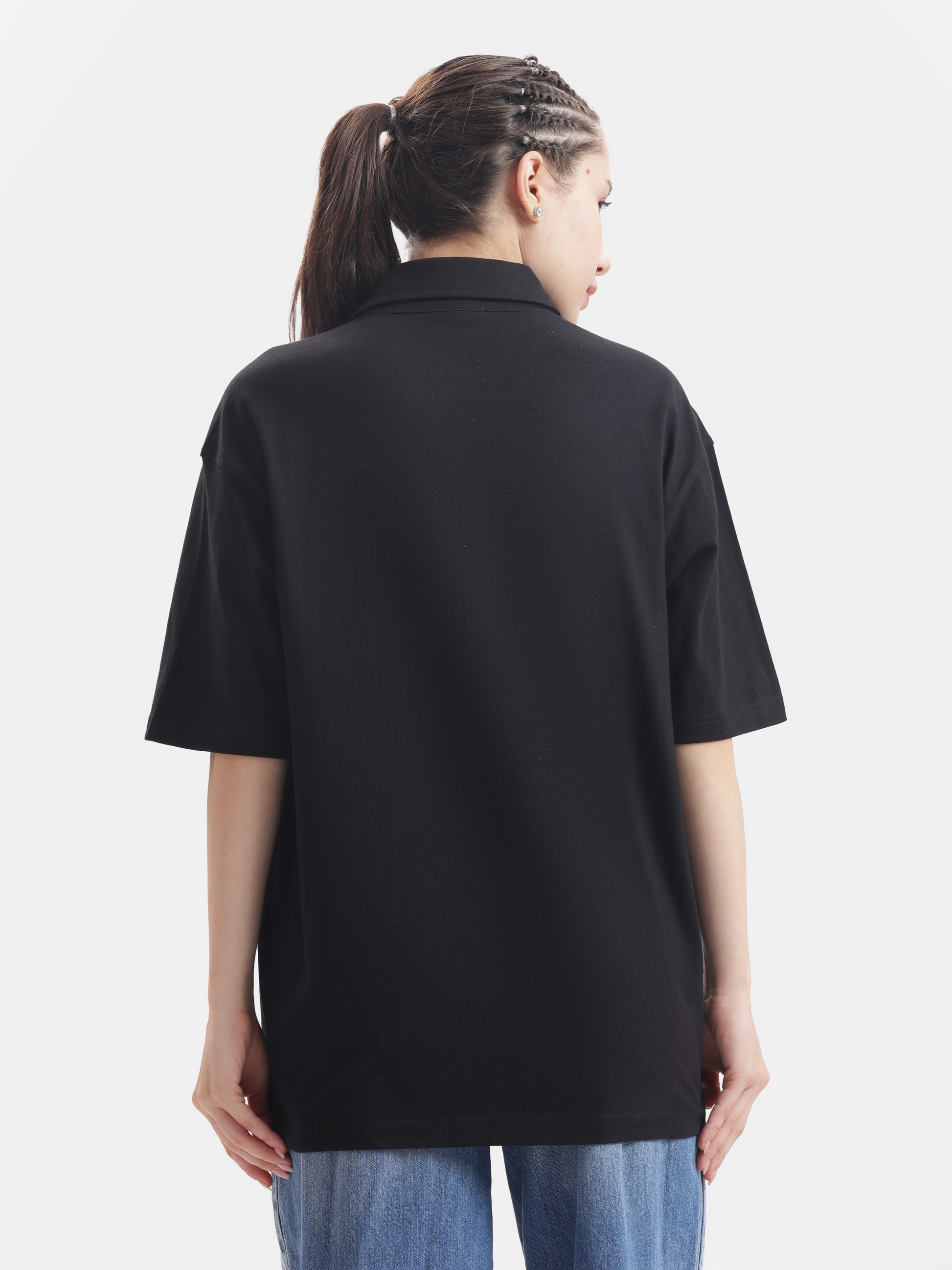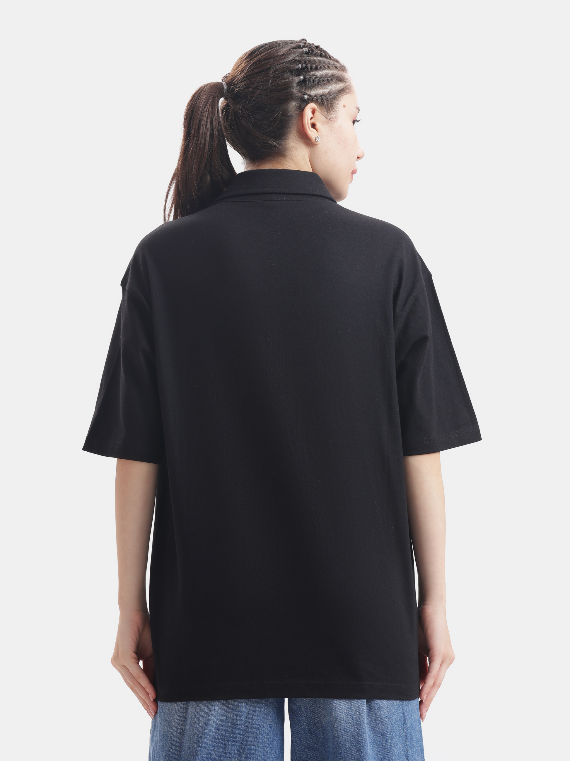 Embrace effortless style with this relaxed oversized black shirt featuring a vibrant brown sunflower embroidery, perfect for casual outings with friends and family, laid-back dates with your bf (boyfriend), or those spontaneous holiday car rides with your colleagues, pairing effortlessly with your favorite jeans or favourite shorts for a look that's both chic and comfortable.