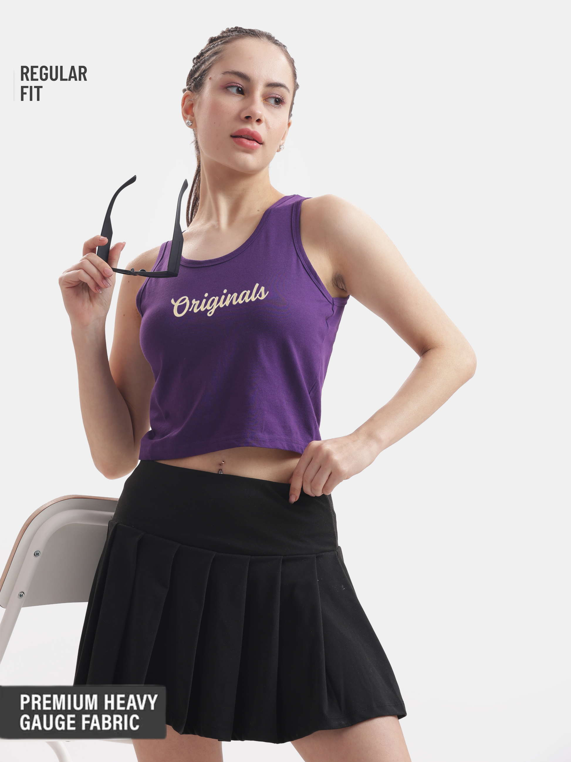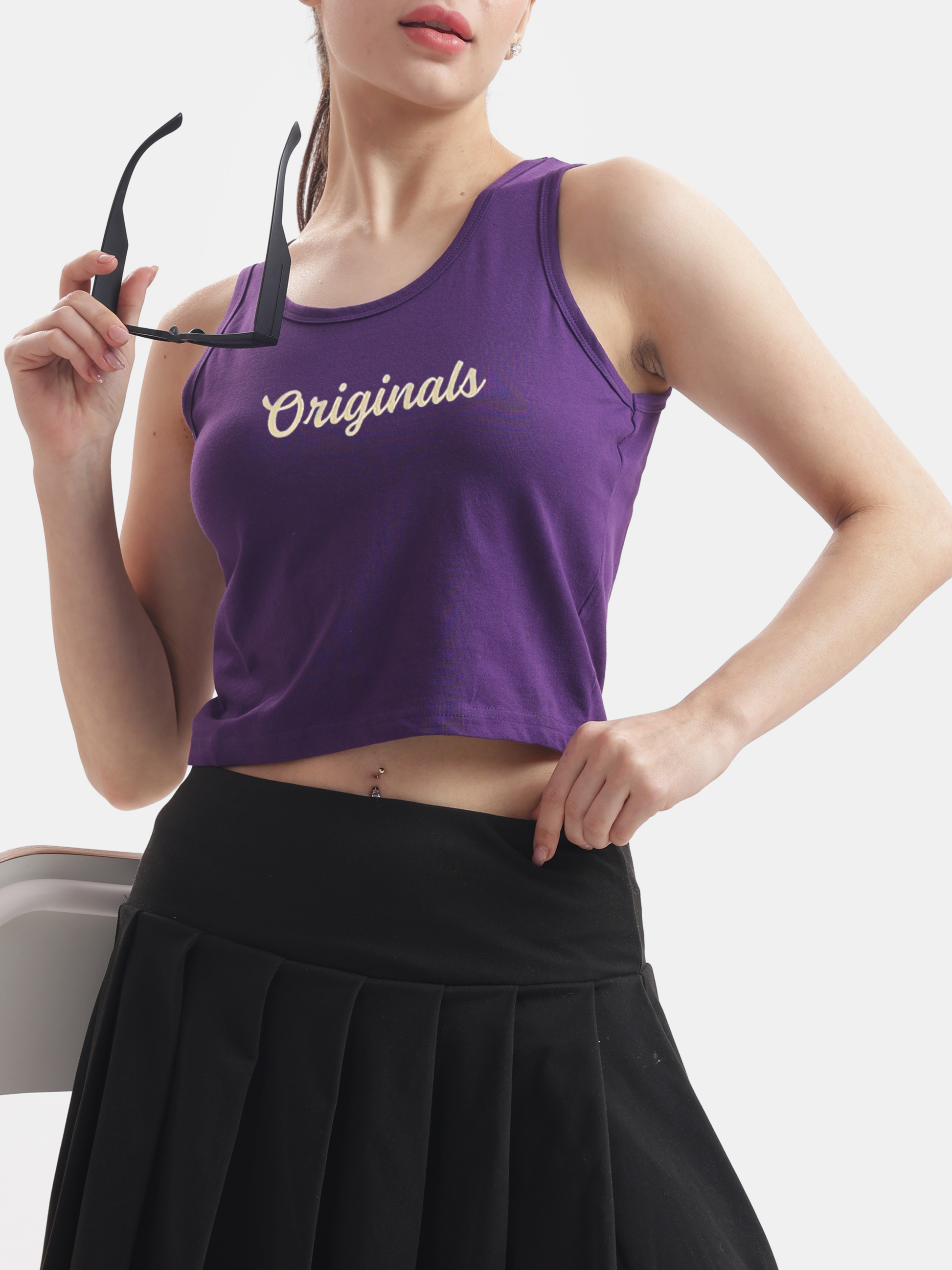 Embrace your urban retro vibes with this casual purple crop tank, featuring a vintage "originals" English typography design that effortlessly pairs with your favorite high-waisted jeans or a flowy skirt for a stylish yet laid-back look.